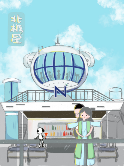 船头的北极星是船上的地标性设施。蓝白色调的北极星,映衬着碧海蓝天,分外好看。