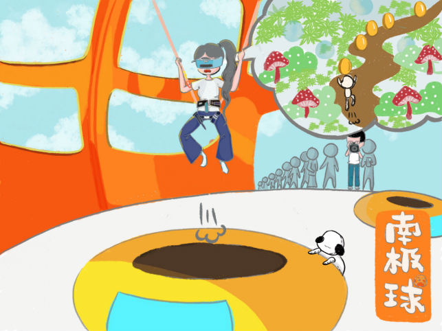 直径13米的球体内,设有4个蹦床。胆子够大,可以肆意腾挪跳跃,体会上天入地的失重感。