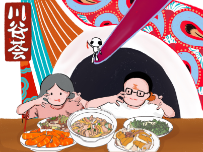 色彩明丽的装饰画们,也映衬着川菜热烈泼辣的灵魂。