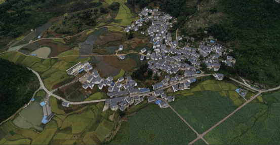 不远处,林木葱郁,白墙黛瓦的民居立在山前。村民们饲养的家禽,忠厚可爱的护院守卫——大黄狗,还有追赶嬉戏的小孩子,带着好奇的目光观察我们这些骑行者。