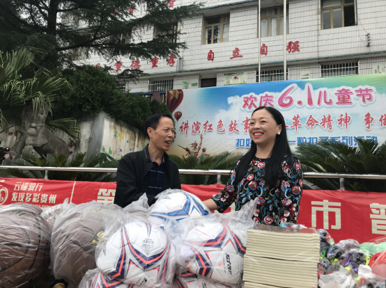图为活动承办方深圳蓝琪儿负责人完颜冬梅与学校进行捐赠