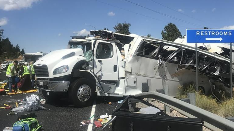 据犹他州公路巡逻队表示,当地时间20日中午前后,一辆旅游巴士在犹他州布莱斯峡谷国家公园附近撞上防护栏,之后发生侧翻,截止到当地时间下午4点,车祸事故已经造成4人死亡,另有12至15人严重受伤,另有10人受到“轻度至严重”伤害。警方表示,大巴上共有30名左右乘客,说中文,目前伤者均已送往医院进行救治。