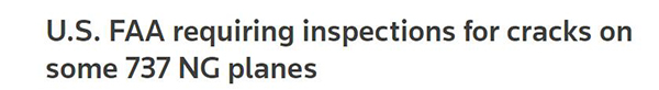 当地时间9月27日晚些时间,美国联邦航空管理局(FAA)表示,将要求运营商针对部分波音737NG客机就机身的“结构性裂缝”进行检查,并要求在发现少量机身裂缝后,根据需要进行维修。