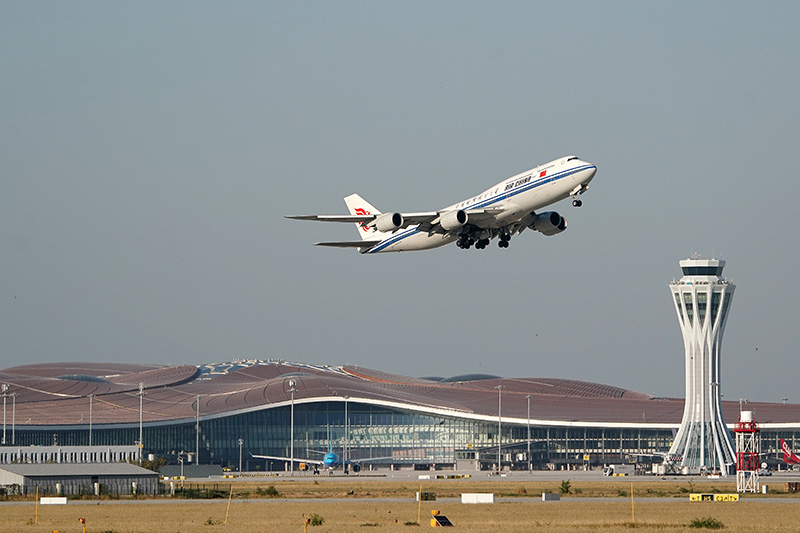 9月25日,中国国际航空公司的CA9597次航班从北京大兴国际机场起飞。 新华社 图