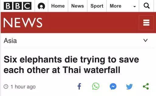 据BBC等外媒5日报道,今日在泰国考艾国家公园,一小象不幸滑倒跌落瀑布,其它5头大象为了救其性命也从瀑布跌落全部死亡。