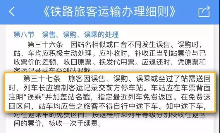 旅客因误售、误购、误乘或坐过了站需送回时,列车长应编制客运记录交前方停车站。车站应在车票背面注明“误乘”并加盖站名戳,指定最近列车免费返回。在免费送回区间,旅客不得自行中途下车。