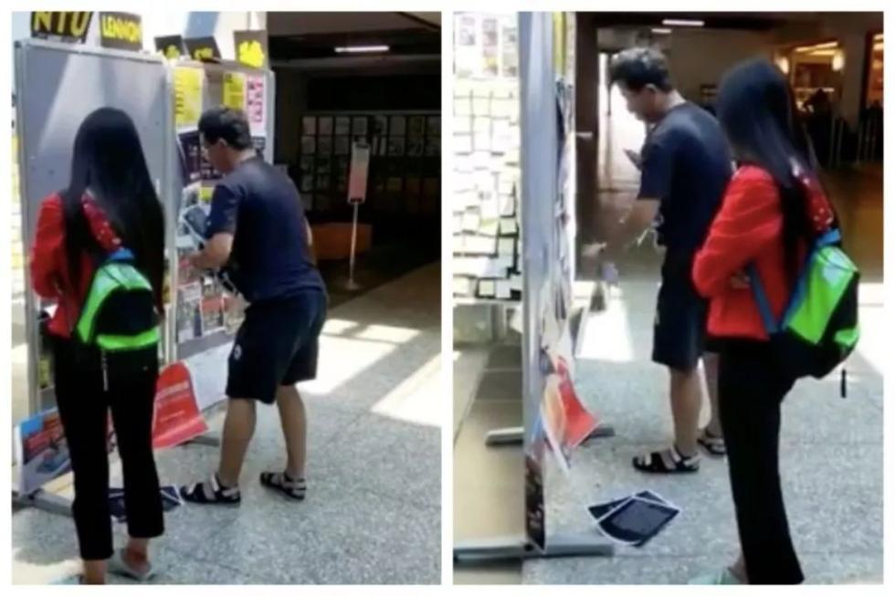 据台湾《中国时报》8日报道,位于台大第一学生活动中心、学生会设置的“连侬墙”上的挺香港暴徒海报,7日被一对陆客夫妻撕毁。现场目击学生将整段过程拍摄下来,协助校方报警处理。台北市大安分局一个派出所接到报案,经警方确认涉案人员为李姓大陆观光客,便将他带到派出所侦讯。台大学生会称将以毁损罪提出诉讼,并且不会撤告或和解。报道称,李姓陆客否认受人教唆,表示他10月1日与妻子来台自由行,前几天都在中南部一带游玩,7日到台北市并到台大校园参观,看到“连侬墙”上的内容,一时气愤撕毁海报。