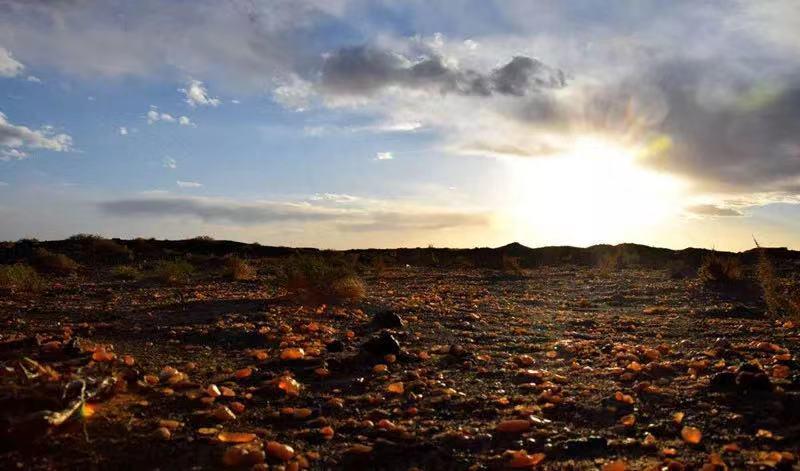 玛瑙湖名为湖,却是一块没有水的宝地。由于当地常常出现海一样的“海市蜃楼”景象,远远的望去,像是一片波光粼粼的湖面,于是当地人称它为—玛瑙湖。