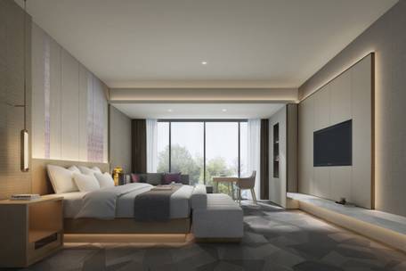 客房,慵懒自在是关键词。双控智能面板与电动窗帘等设备,让用户无需下床即可完成温度调节、灯光模式切换、窗帘开合等一系列操作。浴室空间也得到大幅提升,空间氛围上进行了优化,部分房型还配备了大浴缸。宾客们沐浴时,可以享受一段自我独处的时光,静心冥想的同时储备更多的麗能量。