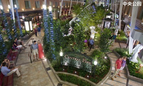 更值得一提的是,海洋交响号上独具创新性的七大主题社区,可以让人仿佛置身于海上城邦。包括中央公园、百达汇欢乐城、皇家大道、游泳池和运动区、活力海上水疗和健身中心、娱乐世界和青少年活动区在内的七大不同社区,可以满足你对于游轮的一切想象,宛如住进了一座海上城堡。其中我最喜欢的是海洋交响号的中央公园,这可能是世界上位置最隐秘的花园了,在游轮中央,与身边超过1200棵热带植物为伴,仿佛身处于一座漂浮在海上的天井。