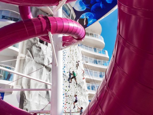 绿洲号与传统游轮最为不同之处,在于丰富多彩的竞技娱乐设施,两堵攀岩墙,一条刺激的Zip Line,每个人都可以从这些设施中找到适合自己的娱乐项目,对于全家出游的宾客来说,再合适不过了。