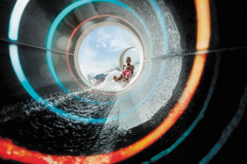 对于喜欢惊险刺激的年轻人来说,完美风景和戏水湾则是海洋交响号上一定要尝试的项目。完美风暴拥有三条高速滑道,当滑过3条高速滑道时,那种速度与激情的快感自不用多说。在“台风”与“旋风”滑道中快速往下滑落,或是落入另一侧 的“超级单体”上巨大的香槟杯里,那快感也实在是妙不可言,我愿意一次次排队的项目简直非它莫属了。海洋交响号上的戏水湾,也同样有着玩不尽的乐趣,这里有惊险刺激的水上滑梯、令人眼花缭乱的喷泉,以及宽敞的游泳池和淋水桶,吸引了众多宾客及小朋友沉迷其中。