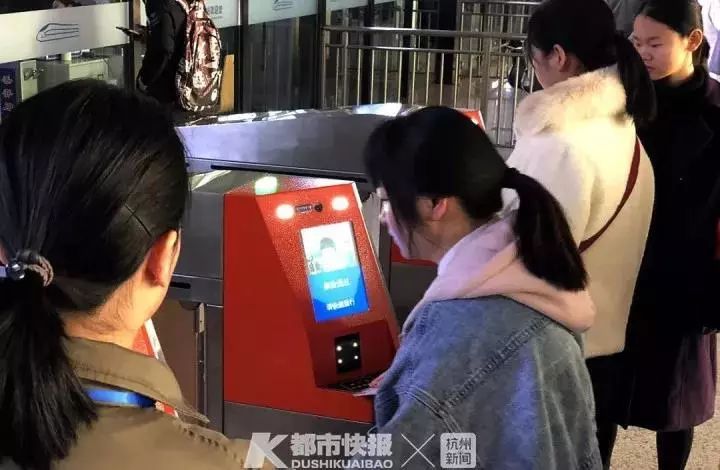 今年3月,杭州东站宣布启用“刷脸”入站,只需把身份证对准感应区,面部正视闸机摄像头,验证通过即可进站,每人只需2秒,大大提高了入站效率。