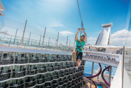 海洋交响号云集了一系列无与伦比的娱乐设施,赋予游轮旅行前所未有的精彩。大大小小23个泳池,两堵攀岩墙,一条高达九层楼的高空索道,还有海上最高滑道“终极深渊”、水上乐园“完美风暴”、滨海游泳池,连甲板冲浪都配有两个。如果你喜欢泡在泳池里的话,我真的要推荐你必须来体验了。