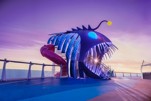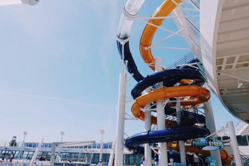 终极深渊高达 10 层楼,是目前海上最高的旋转滑梯。当你从食人鱼造型的入口一跃而下时,就尽情享受你的尖叫吧。海洋交响号上的水上项目简直不要太精彩,这个水上旋转滑梯我是真的没玩够……