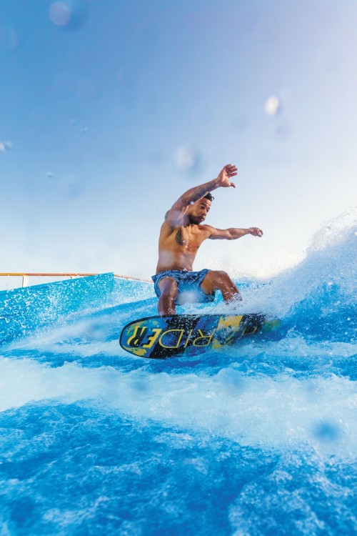 甲板冲浪可以说是我们的老朋友了,在国内运营的海洋量子号和海洋光谱号上都有配置。你可以想象一下,在漫无边际的大海中,前方是大海的波浪,你却肆意的在游轮上玩着甲板冲浪,还什么比这更过瘾的呢?你不需要会游泳,不需要害怕安全问题,更不需要担心技术问题。只要你有胆量,它就是你挑战自己最好的运动。