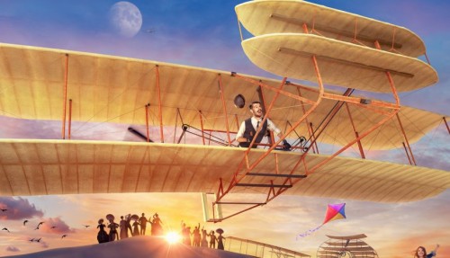 在《漫步云端》这个精彩刺激的节目中,主角们带你不停穿梭于历史与未来。这部历史剧讲述的是莱特兄弟发明飞机的故事,也是关于梦想付诸现实的励志剧。在演出最后,当人类第一台飞行器就翱翔在舞台上方,再配合着背景音乐“Dare to dream,Dare to fly”,惊险刺激,真的有心潮澎湃的感觉。