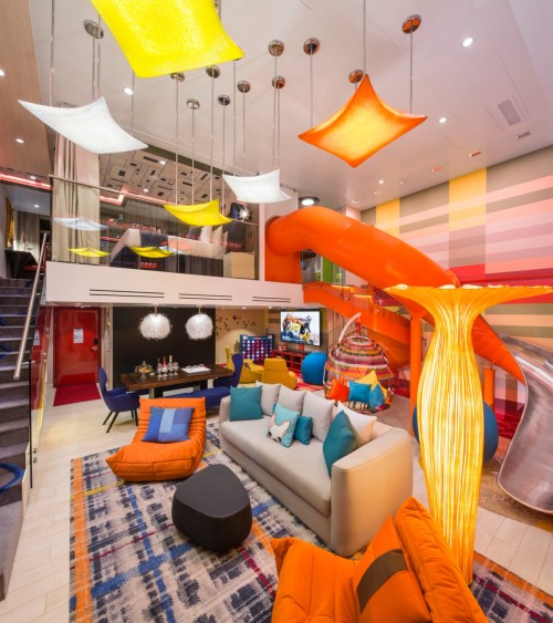 如果你是大家庭出行,且预算充足的话,完全可以预定The Ultimate Family Suite完美家庭套房,好到整个行程完全都可以不出门,因为房间就有滑梯,还有一间3D影院式房间,爆米花机,电子游戏室和图书馆,更有户外攀岩和浴缸,整个套房最多可容纳8人家庭入住。而在以上海为母港运营的海洋光谱号上也有完美家庭套房,而且它最多能住11个人哦,没记错的话,皇家加勒比在双十一的时候还有海洋光谱号完美家庭套房的产品正在超值预售中。
