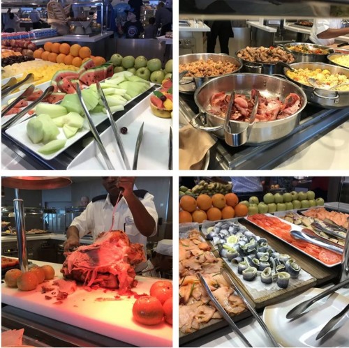 位于16层甲板的帆船自助餐厅,按照各国美食分类,既有西式精致美食,也有纯正的亚洲风味,悉心照顾各国宾客的用餐习惯。虽然身处可容纳近万人的游轮,自助餐厅也毫不显拥挤。餐厅内整洁有序,坐在落地窗边欣赏加勒比海美景,享受着眼前的美味食物,美好的一天就从这里开始了。