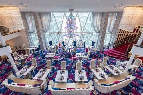 可一次容纳二千多人的皇家主餐厅,挑高三层,如欧洲宫殿般气势恢宏。三百多位国际厨艺大师为各地游客烹制出一道道丰盛可口的当代美食。想想自己可以在这艘海上城邦里享受蕴含世界各地灵感的菜品,体验皇家般的奢华,此生足矣!