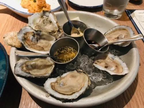 在“海洋交响号”的特色餐厅里,我最喜欢Hooked Seafood海鲜餐厅。这是一家提供各类新鲜海鲜料理的餐厅,餐厅布置偏地中海式,犹如扑面而来的海风,让人胃口大开。主菜的烤龙虾尾,汁水四溢,虾肉饱满,显然是经过了精心腌制而成,五星推荐!来自加拿大的生蚝,带有海水的咸味,鲜嫩的蚝肉入口即化,你无法想象在游轮上还可以品尝到如此新鲜的生蚝。