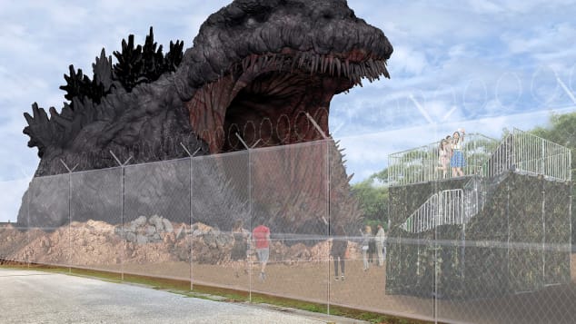 兵库县淡路岛的Nijigen no Mori主题公园将于2020年首次开放以哥斯拉为主题的园区,其中将有一只高20米(65英尺),宽25米(82英尺),55米(180英尺)的大型蜥蜴怪兽。它是比照电影中大小进行复原的。