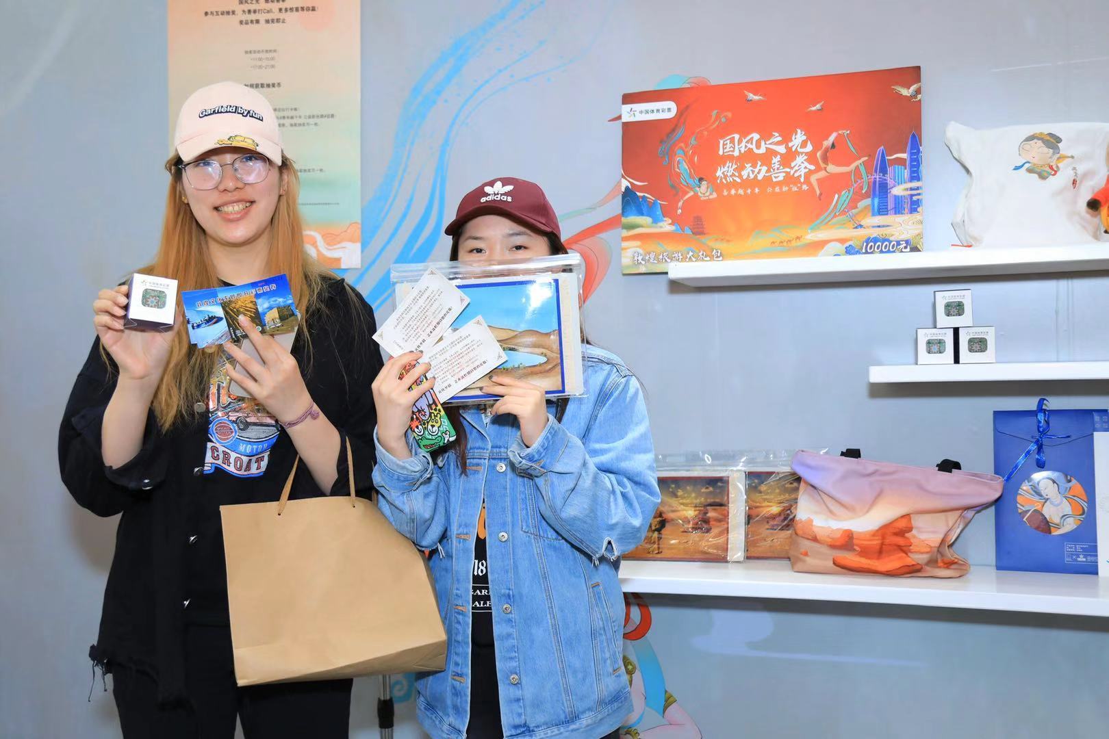 正如国风系列活动的最初设想,体彩用时尚有趣的方式与年轻人进行一场直接对话。在公益金展示区、互动拼图区和沉浸式体验区集齐三枚印章或者在拍照打卡区留影发朋友圈即可参与抽奖活动,奖品皆是敦煌文化周边产品——丝巾、帆布包、水杯、魔方等等。据现场数据统计,两天的时间里,共有28700名观众到现场打卡,国风礼品送出1057份。