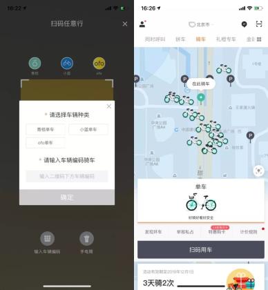 滴滴APP扫码骑车页面