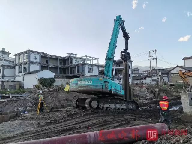 当天晚上20时许,记者来到了银桥镇的施工点。尽管天已经黑了,这里的工人却依然在井然有序地工作着。云南建投总承包二部执行指挥部长杨成周向记者介绍,银桥镇的施工内容有8.6公里的生态廊道,施工内容分管网和道路两部分,目前都在同步实施,整个8.6公里全线启动,投入了36台挖机、两台压路机、360多个工人,并与乡镇联合办公,成立了现场督察小组以保障今年目标任务的完成。