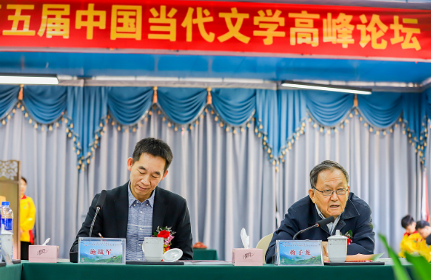第五届中国当代文学高峰论坛以“家国情怀与文学表达”主题展开,并邀请了著名作家、中国作协原副主席、党中央、国务院授予“改革先锋”称号蒋子龙,《人民文学》主编、中国作协主席团委员、著名评论家施战军,中国作协主席团委员、茅盾文学奖获得者、八一电影制片厂原厂长柳建伟,中国作家出版有限公司董事长、著名理论家、出版家路英勇,《中国国家地理》社长兼总编辑、创始人、奥运会火炬手李栓科等文学大咖出席参加,展开精彩的交流与互动。