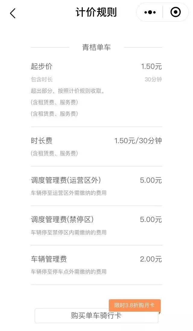 ▲青桔单车最新计价规则