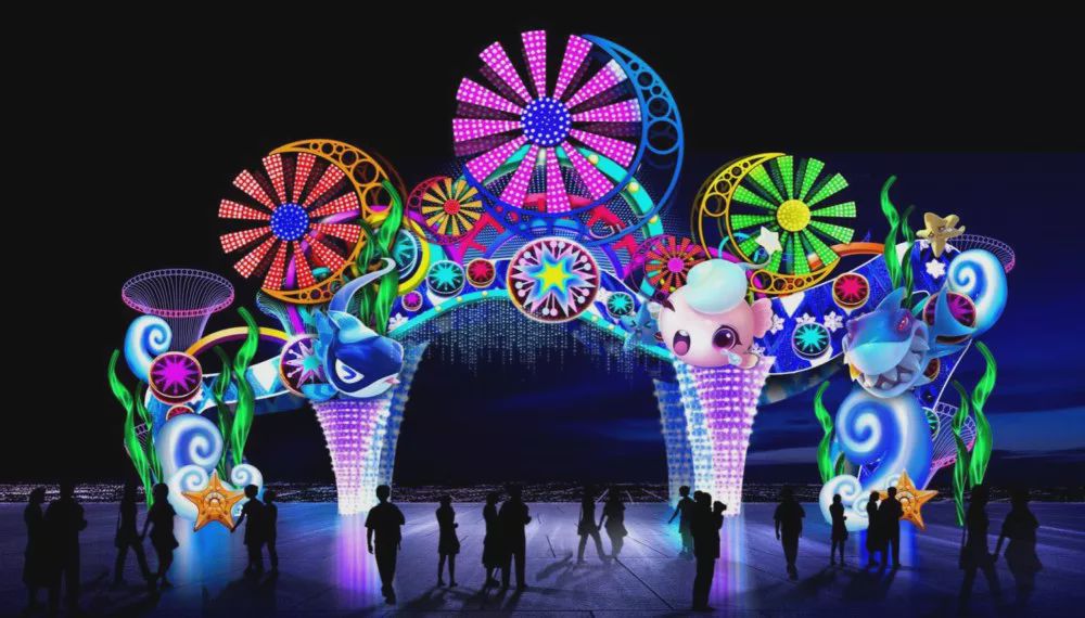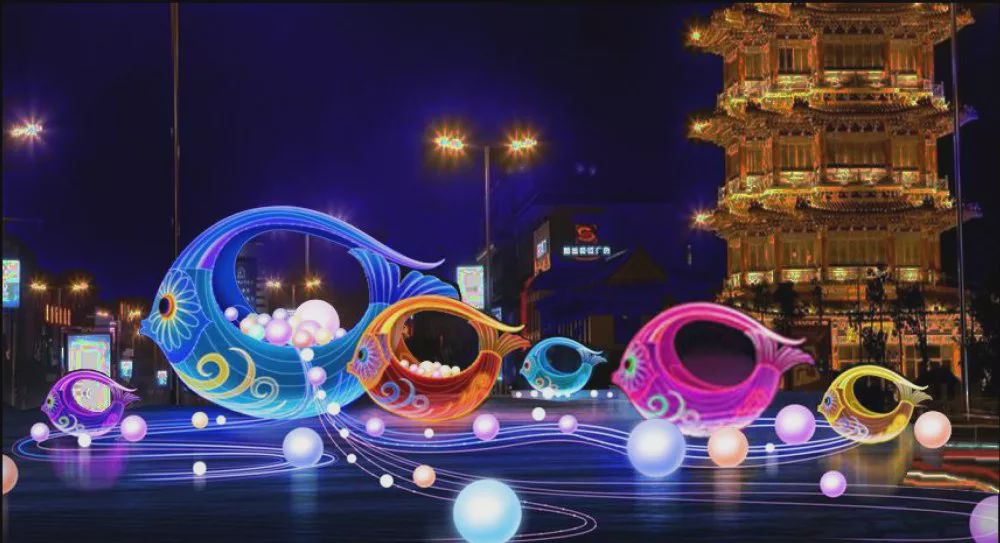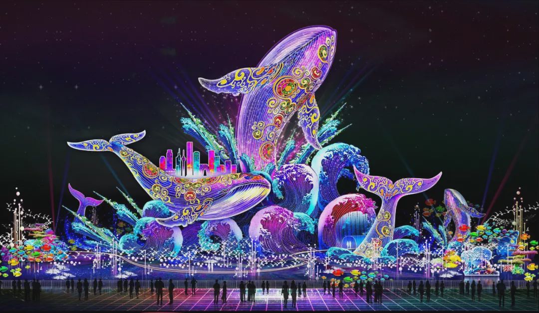 巨型鲸鱼花灯璀璨交错,