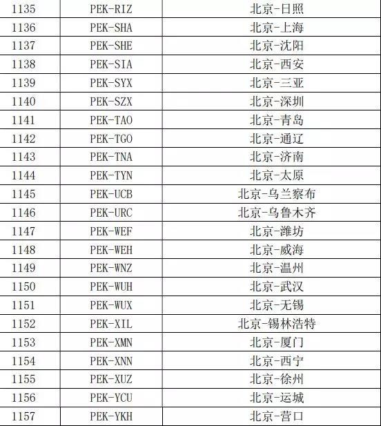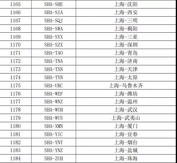 其中,上海出港的航线包括:上海-沈阳、上海-天津、上海-厦门、上海-三亚、上海-青岛等;北京出港的航线包括:北京-西安、北京-三亚、北京-深圳、北京-厦门、北京-无锡等。