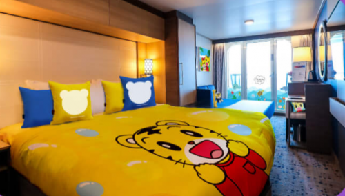 游轮的收费标准与主题乐园不同,只要超过六个月以上,孩子就按照人头收费。这一次我们选择了高区船中的家庭阳台房。18.4㎡的面积是足够奢侈,加上5㎡的阳台,想想也会让航程的美好又多几分。此时,又幻想了一下巧虎航线的主题房,无处不在的巧虎,想着孩子估计会更加兴奋。