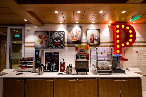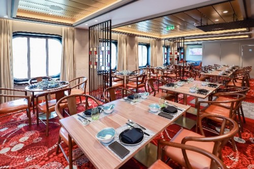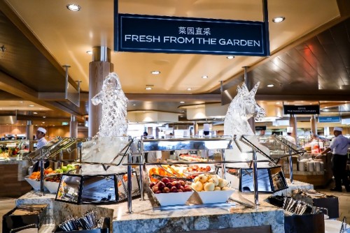 光谱号上一共三十多种餐饮选择,八家免费餐厅,十家收费餐厅,以及大人可以放松的十一个享受酒水魅力的酒吧等等。首先不得不从主餐厅和帆船自助餐厅开始说起。餐厅在进入前,都有自动免洗洗手液机,简直治愈老妈的强迫症。可容纳1884人的免费主餐厅每天提供不同的中西式菜谱,可单点、自由选择或者分享。免费的帆船自助餐厅,全天候迎客,即拿即用、节约时间的同时,也最好地调和了一家子地口味。像一些主题乐园一样贴心,即将首航的巧虎主题房航线将会有巧虎与宝贝们共进早餐、合影留念等环节,关键是还不额外加收费用哦。