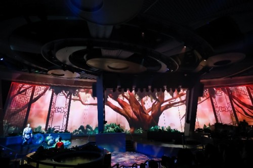 而充满异域风情的《丝绸之路》在270度景观厅上演,这场秀融入了中国 、波斯、 印度和罗马的文化、音乐和歌舞风格,以12K全息数码投影为背景,通过充满异域风情的舞蹈表演,加上现代声光和智能机器人屏幕造势,各种元素奇妙混搭,演绎了追求人类大同的梦想。正能量加上历史的背景,也是一部不错的家长和孩子都拍案叫绝的剧啦。