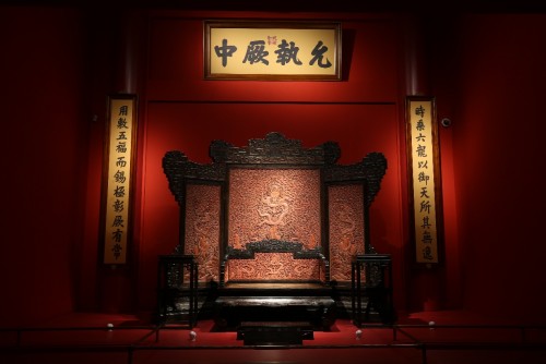 步入一层大厅,贴金龙纹屏风宝座、紫檀雕云龙纹顶箱柜展示出皇家气派,这一场景可谓是博物馆内最佳拍照点。