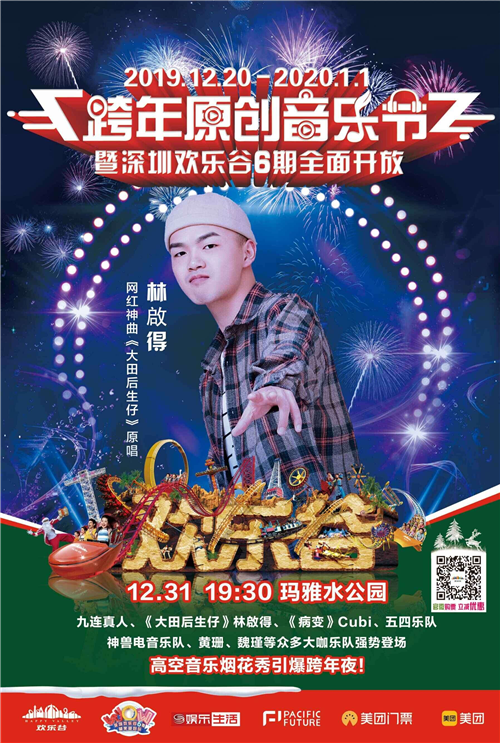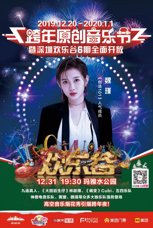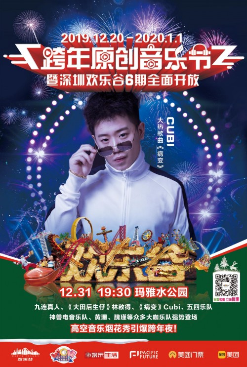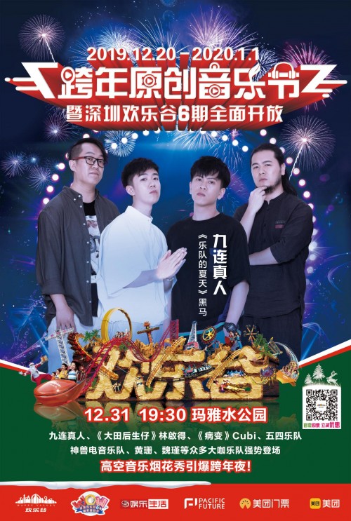 深圳欢乐谷跨年原创音乐节了解一下!跨年原创音乐节期间,玛雅水公园化身为大型蹦迪现场,音乐、尖叫、灯光、烟花,嗨玩一夜火力全开!火爆全网综艺“乐队的夏天”中“黑马”乐队九连真人,把原汁原味的客家方言与摇滚完美结合,是华语乐坛中又一风向标;网红神曲《大田后生仔》的原唱林啟得,闽语神曲红遍大江南北,引发了全民嗨唱;大热歌曲《病变》的歌手Cubi歌声直击人心,以及曹晋、温妮、黄珊、魏瑾、李腾一、绿巴士、五四乐队、嘶鸣摩托乐队等众多音乐大咖将亲临深圳欢乐谷现场!涵盖中生代歌手和新生代歌手等不同年龄阶段,从摇滚、电音再到网红神曲,和大咖们一起一路高歌,全民嗨唱,引爆跨年原创音乐节!
