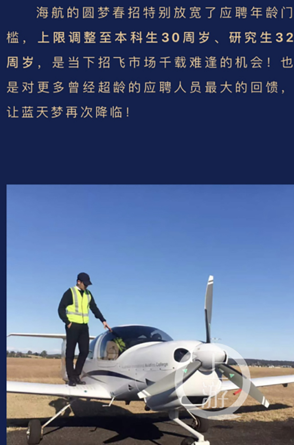 海南航空飞行员招聘公众号2019年1月发布的招聘信息。本文图片均由受访者供图