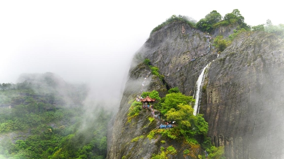 天游峰是武夷山景区的精华所在,不临溪却能览尽九曲之胜。每当雨后乍晴,晨曦初露之时,白茫茫的烟云弥山漫谷,汹涌澎湃。登峰巅,望云海,宛如置身于蓬莱仙境,遨游于天宫琼阁,故名天游。