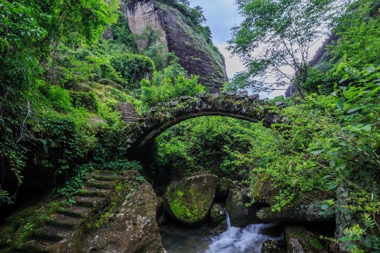 岩骨花香漫游道是从大红袍母树到水帘洞的一条类似峡谷的山间小道。沿途串联了大红袍、流香涧、慧苑寺、双悟桥、古崖居遗址、水帘洞等景点。这里是武夷山岩茶的核心产地,是老茶客津津乐道的“三坑两涧”,是本地人所说“最贵最浪漫的路”。“峡谷”里几乎没有任何人工修饰的痕迹,极大限度地保留了大自然最原始的样子。尤为难得的是,因为全长有3.5公里,所以游人稀少,环境清幽。在这里,你可以避开拥堵的人群,享受小桥流水人家,古道西风茶香的野趣。