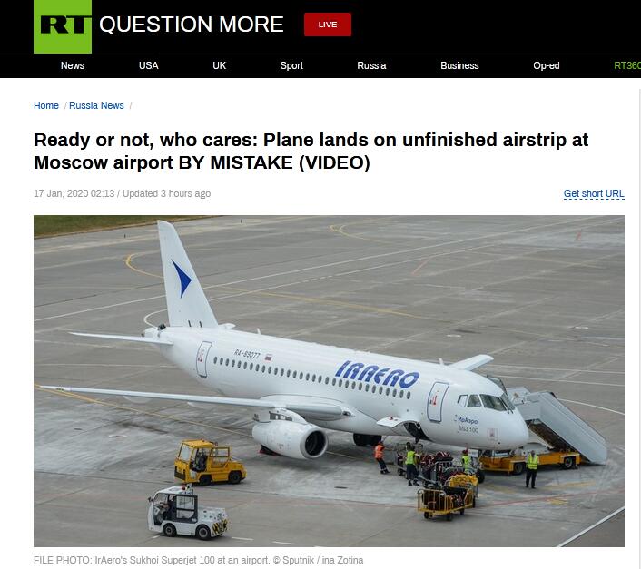 RT援引俄罗斯媒体“Vedomosti”的报道介绍说,上述客机“误降”的多莫杰多沃(Domodedovo)机场第三跑道于2014年开始建设,本计划在两年后完工,但因其主要承包商破产,机场建设计划随后被打乱,跑道最终只完工了80%。
