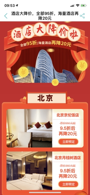现在临近过年再打95折,真的很划算呢。过年出行玩乐,酒店还是要选择价格相对实惠一些的,省下来的钱,买点好吃的,它不香吗!
