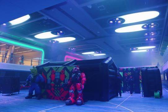 碰碰车之后接下来干什么呢,镭射对决怎么样。拿着二少的玩具枪,我们用沙发和家具作为掩体,满屋子乱窜,二少玩的不亦乐乎。不过家里玩起来始终没有游轮上放得开,我不会承认是害怕打碎东西的,最重要的是游轮上是用了一个大大的迷宫来作为镭射对决的场地,那样玩起来才有趣啊。(希望邻居们不要介意,我们在家实在是憋得慌)