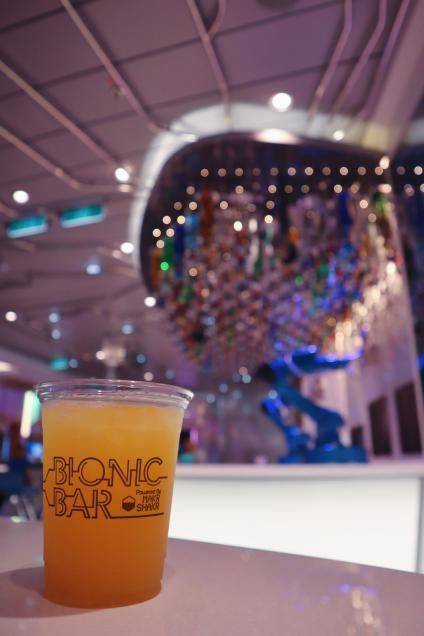 除了各式美食,我最怀念的就是游轮上,那充满科技元素,未来感十足的上机器人酒吧了。点酒之后,机器人调酒师会动手调制专属于客人的特饮,并送到我的手边。(奈何家里没有那么高端的机器,那就只能由爸爸代劳了)