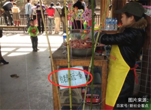 一名摊贩正在为桌上满满一盘生肉串竹竿,上面还有一张价目表:钓老虎15元一条。有游客反映,投食老虎的工具和材料就是在这个摊子上买来的,花15块钱体验一次钓老虎,回去后够我吹嘘一辈子了。据了解,该项目在景区内已存多年,该段网络视频也在网上引起热议,有网友认为,你们有考虑过老虎的感受么?