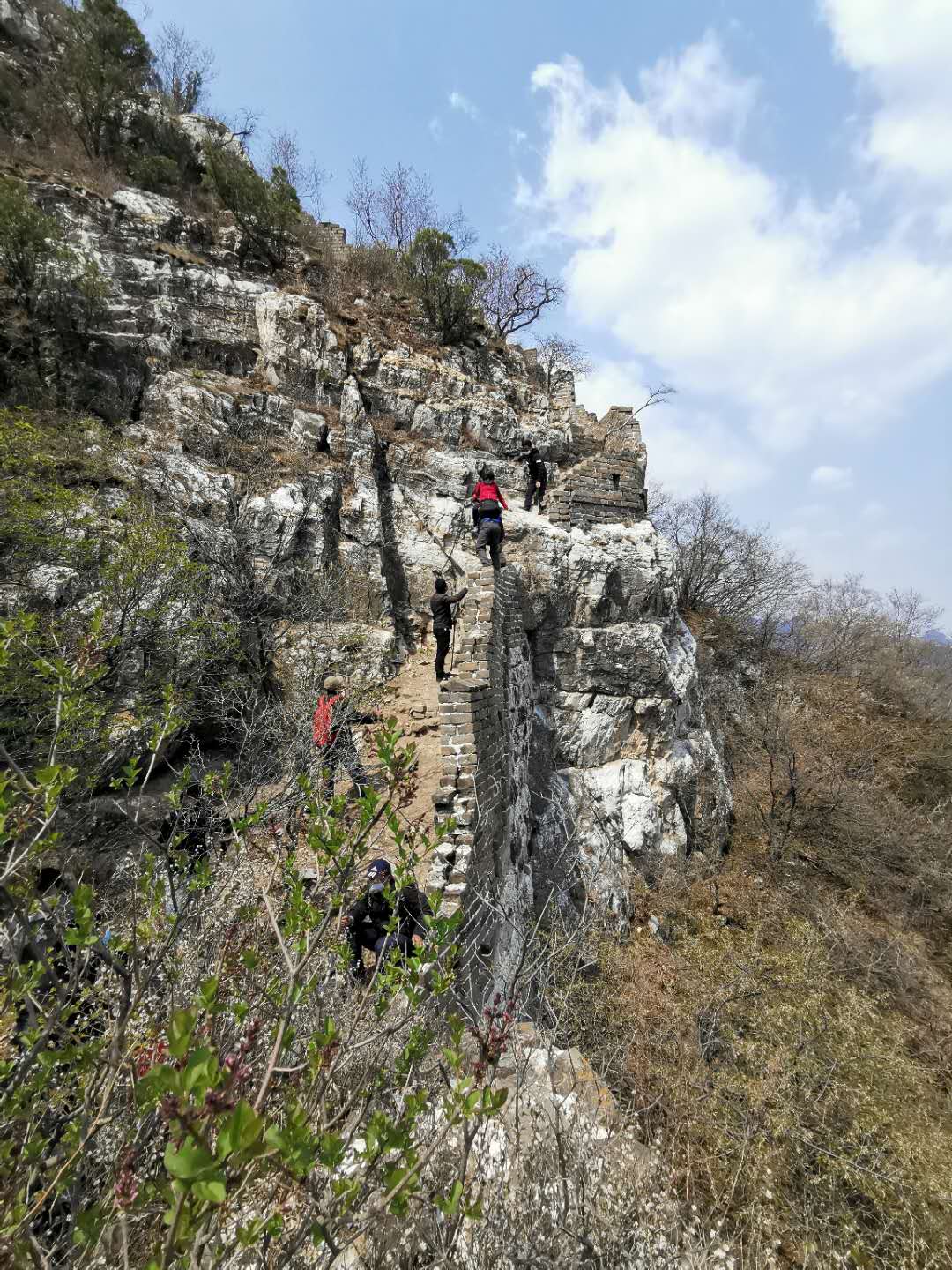 记者观察发现,修缮后,对现有风貌影响可以说是少之又少。比如,驴友爬箭扣最爱挑战的另一个高难度点——翻石过海,这一段长城的墙体早已不复存在,驴友攀爬时,只能从旁边的山崖上通过,远看这段数十米高的山石像放大的盆景一样,瘦石嶙峋,根本没有路。贴心的驴友也在上面安装了绳索,局部拴在山石中长出的倔强的小树树干上,看着令人心惊胆战。攀爬的时候,登高踩低、手脚并用,双手一秒都不能放松,才能把身体拉上去。