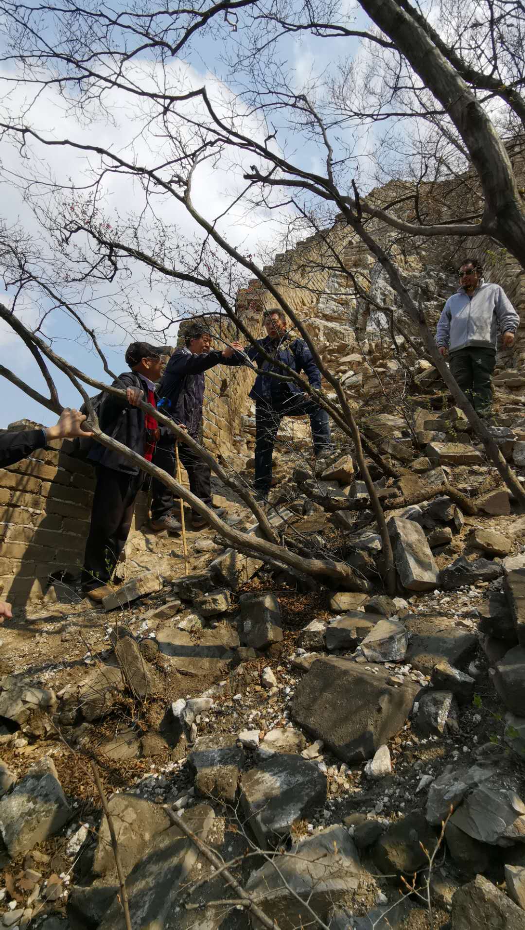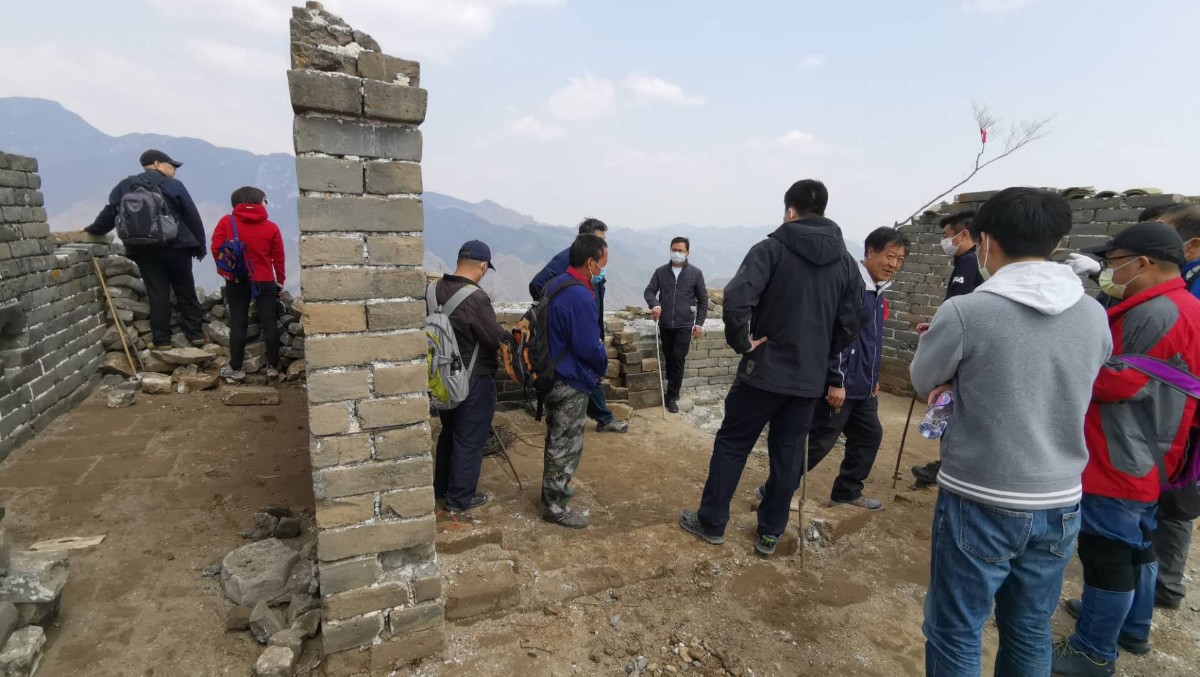记者因采访需要,去年冬天和4月17日开工当天,两次全程爬完箭扣东段。尤其昨天开工,设计、施工、监理、甲方怀柔区文旅局文物所、北京市文物质量监督站五方全部到场,现场听设计和市文物局质量监督站的工作人员向施工单位进行“技术交底”,详细讲解全长1094米哪儿需要修缮、怎么修缮。