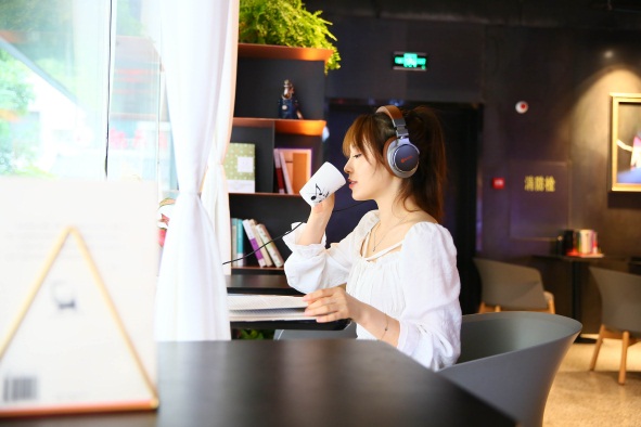 穿过玻璃门,已经是另一个世界,年代感十足的收音设备,记录着曾经或辉煌或淡漠的声音,也记录着时代的变迁,与喜马拉雅声音大咖墙相互辉映,也开启了特别的声音之旅,大堂里播放的是时下最流行的音乐,而音乐不能挑动你的神经,那不如去试试伸手即得的耳机森林上的耳机,或者安然落座,动动手指,喜马拉雅定制版耳机可以随时满足你对声音的诉求。