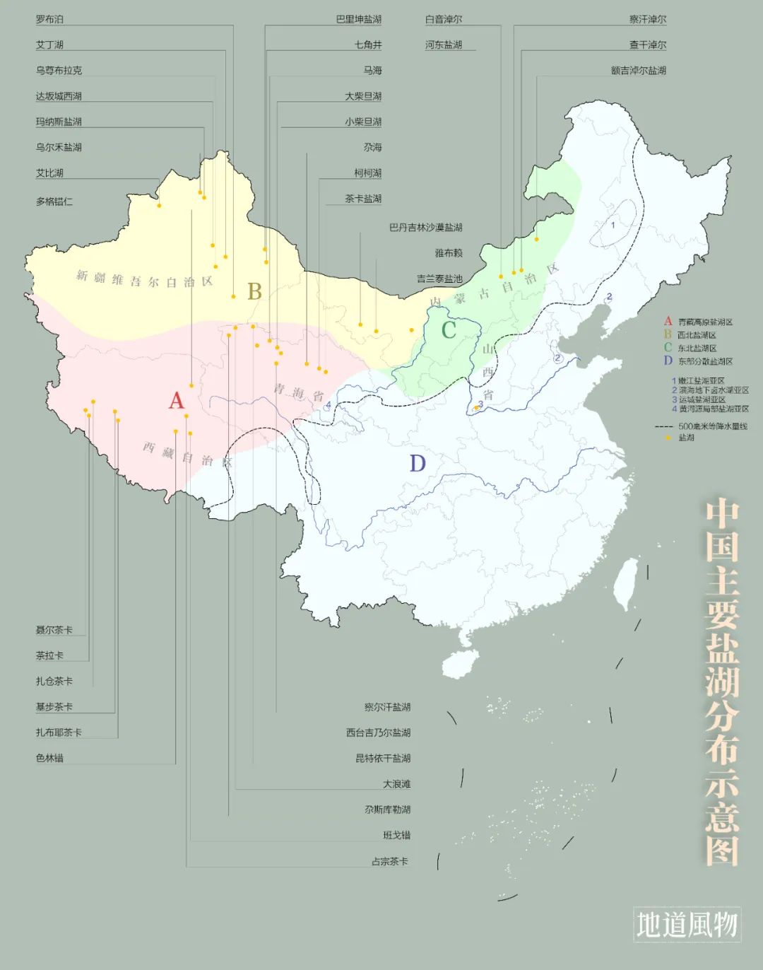 ▲中国主要盐湖的分布及其区划。 制图/王跃
